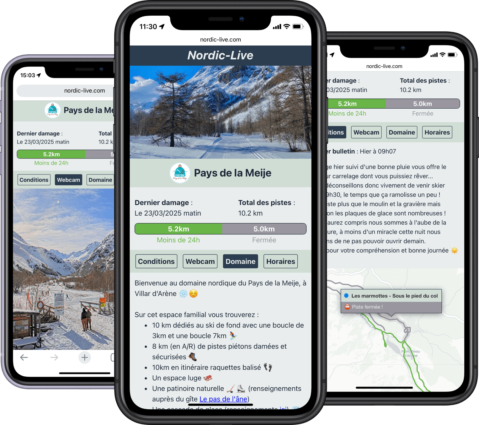 Préparez vos sessions de ski nordique sur vos domaines préférés à l'aide d'informations temps réel !