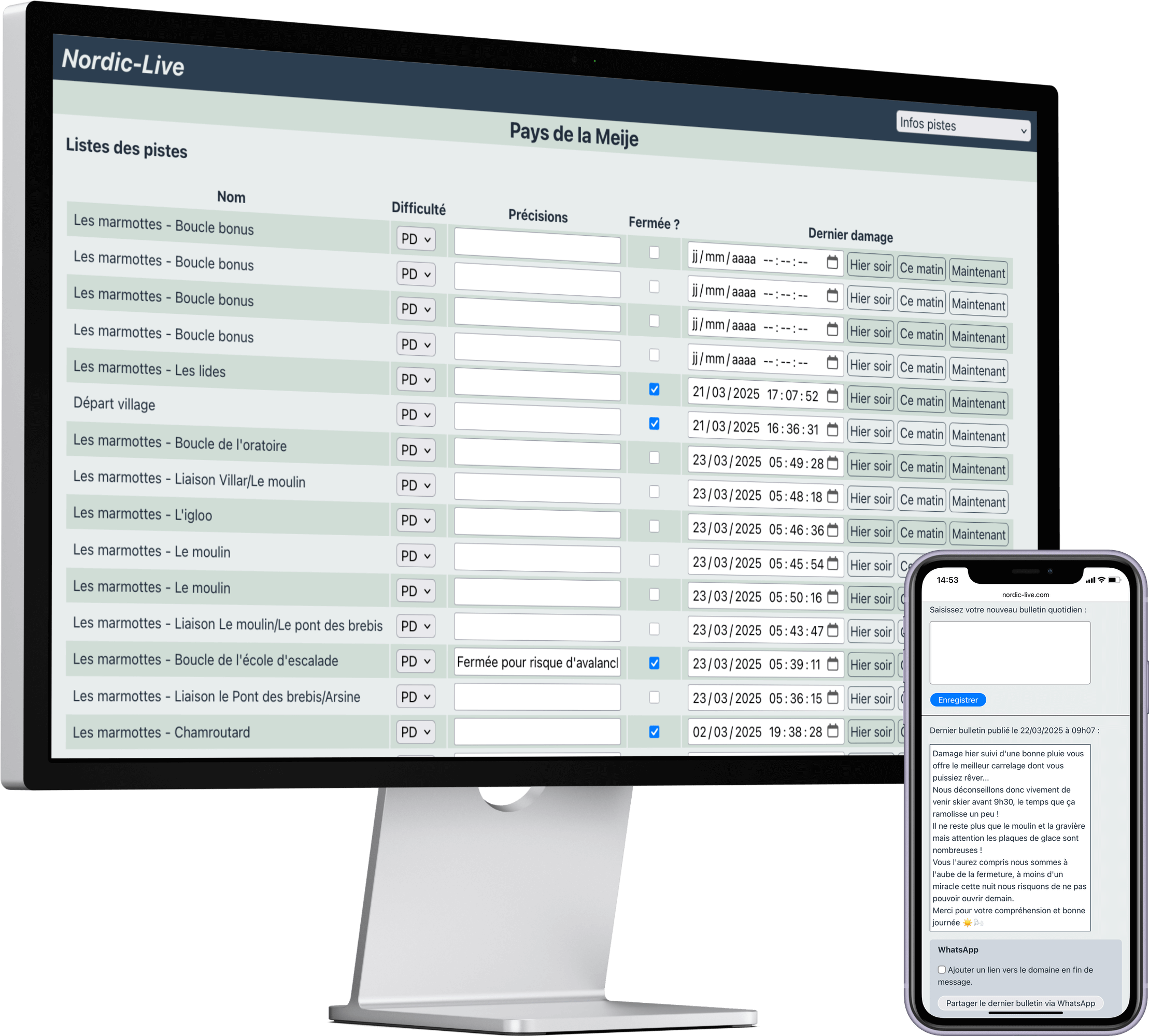 - Publiez votre bulletin quotidien chaque matin : les informations sont instantanément disponibles pour tous les skieurs.